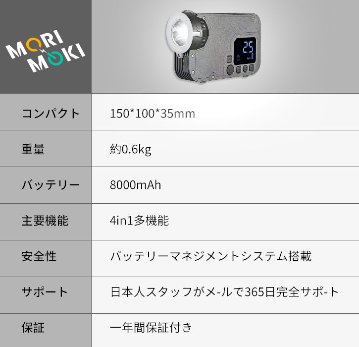 電動エアポンプを内蔵したMORIMOKIなら、