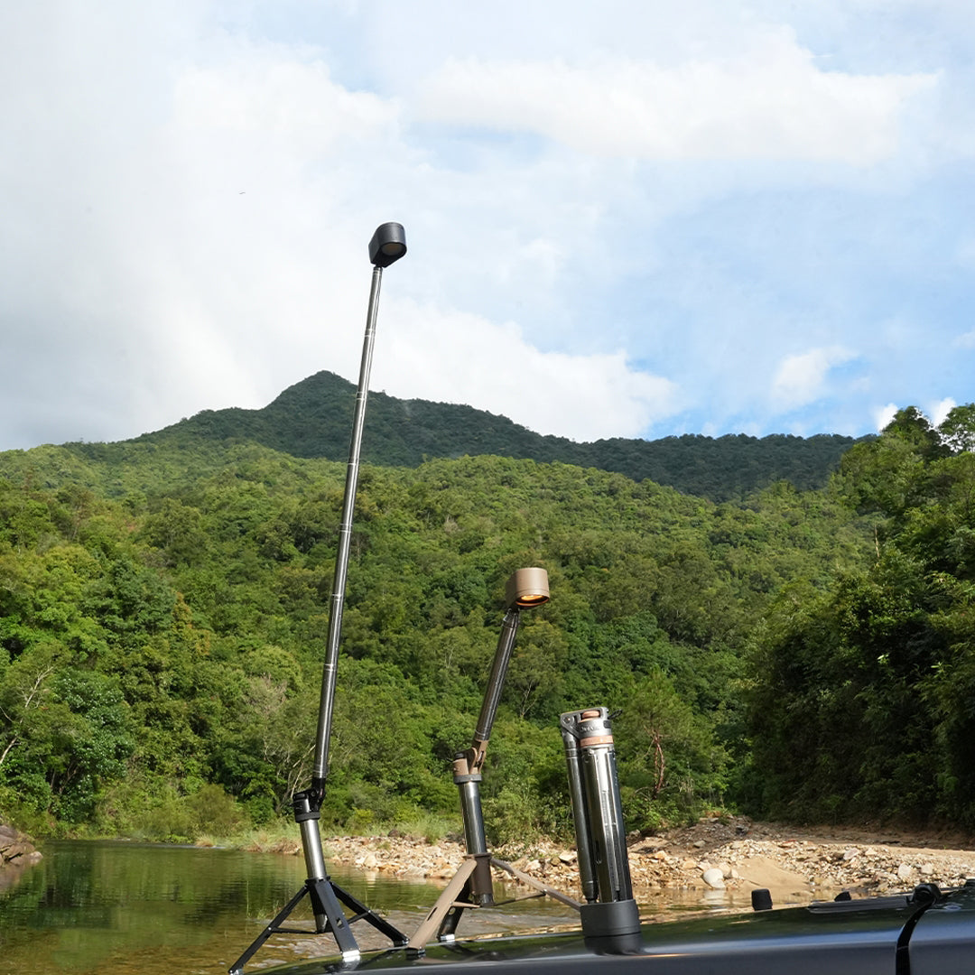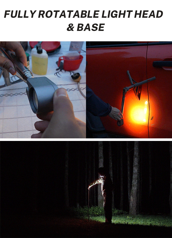 - 伸縮ポール+720°回転ヘッド+360°回転ベースで照射角度を自在に調整可能