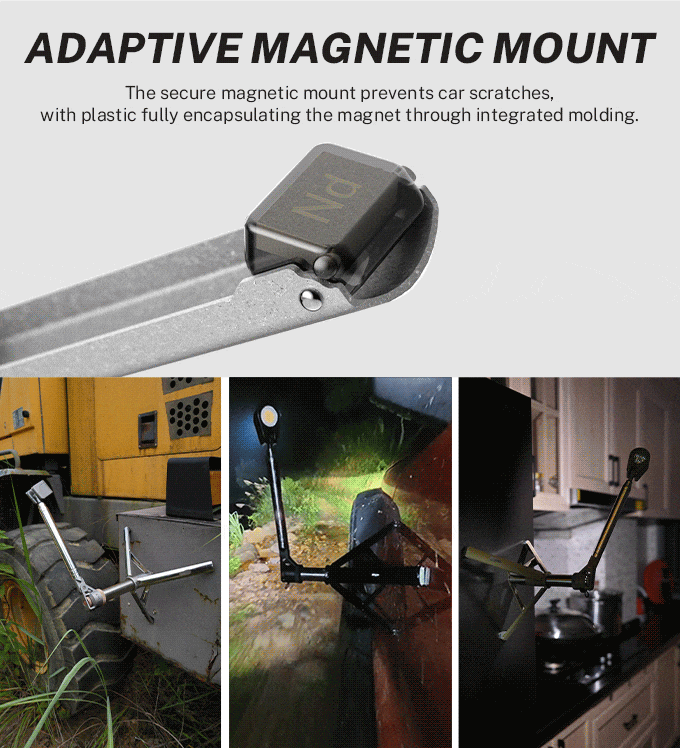 - 自動磁気吸着ベースで、金属面に固定でき両手を解放