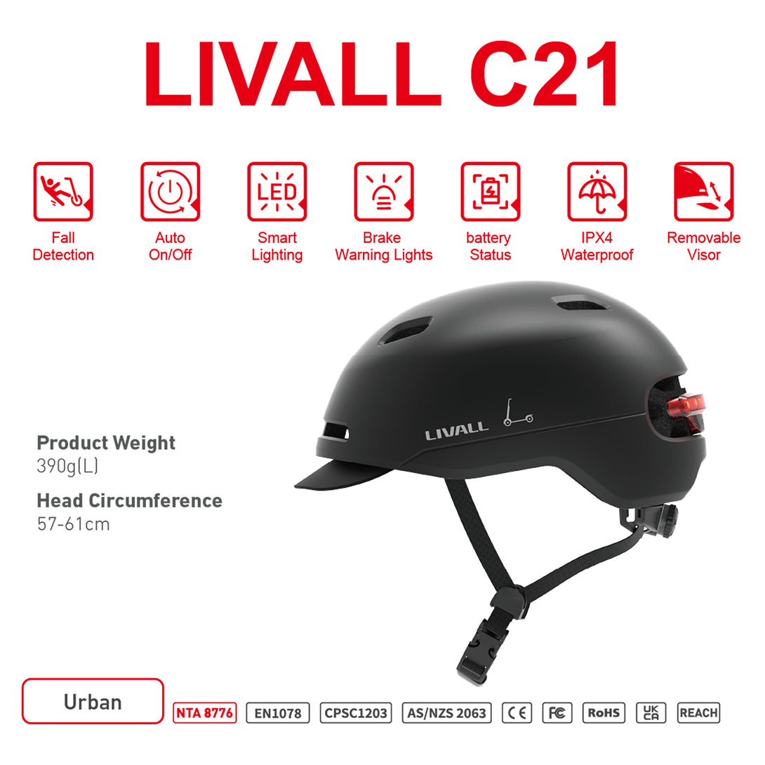 LIVALL C21 は、都市ライディングのために設計されたスマート自転車/電動スクーター用ヘルメットで、安全性と利便性を強調しています。