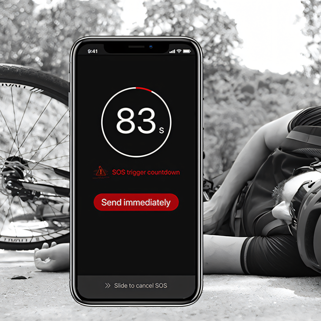 - アウトドアスポーツで初めて特許技術の転倒検知とSOS警報機能を実現。事故が発生した際に転倒を検知し、90秒後にGPS位置情報と共に設定された緊急連絡先にSMSアラートを送信。