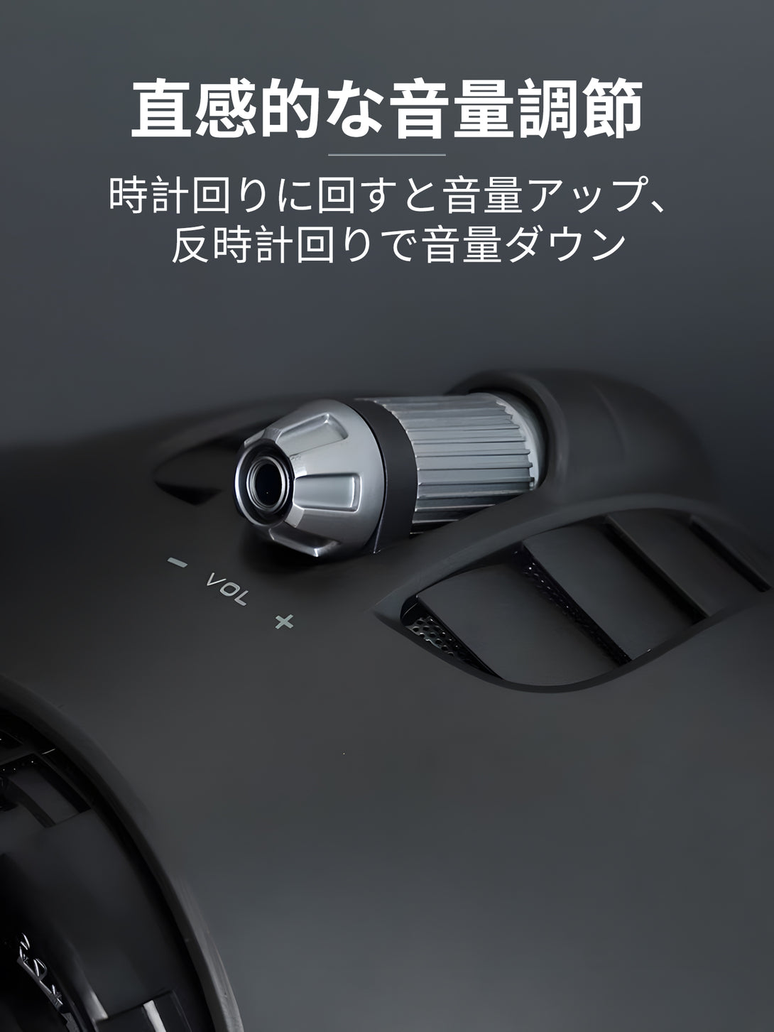 スピーカーのトップに音量ノブがあり、時計回りに回すと音量が大きくなり、逆に回すと音量が小さくなります。音楽の質感を自由に調整できます。