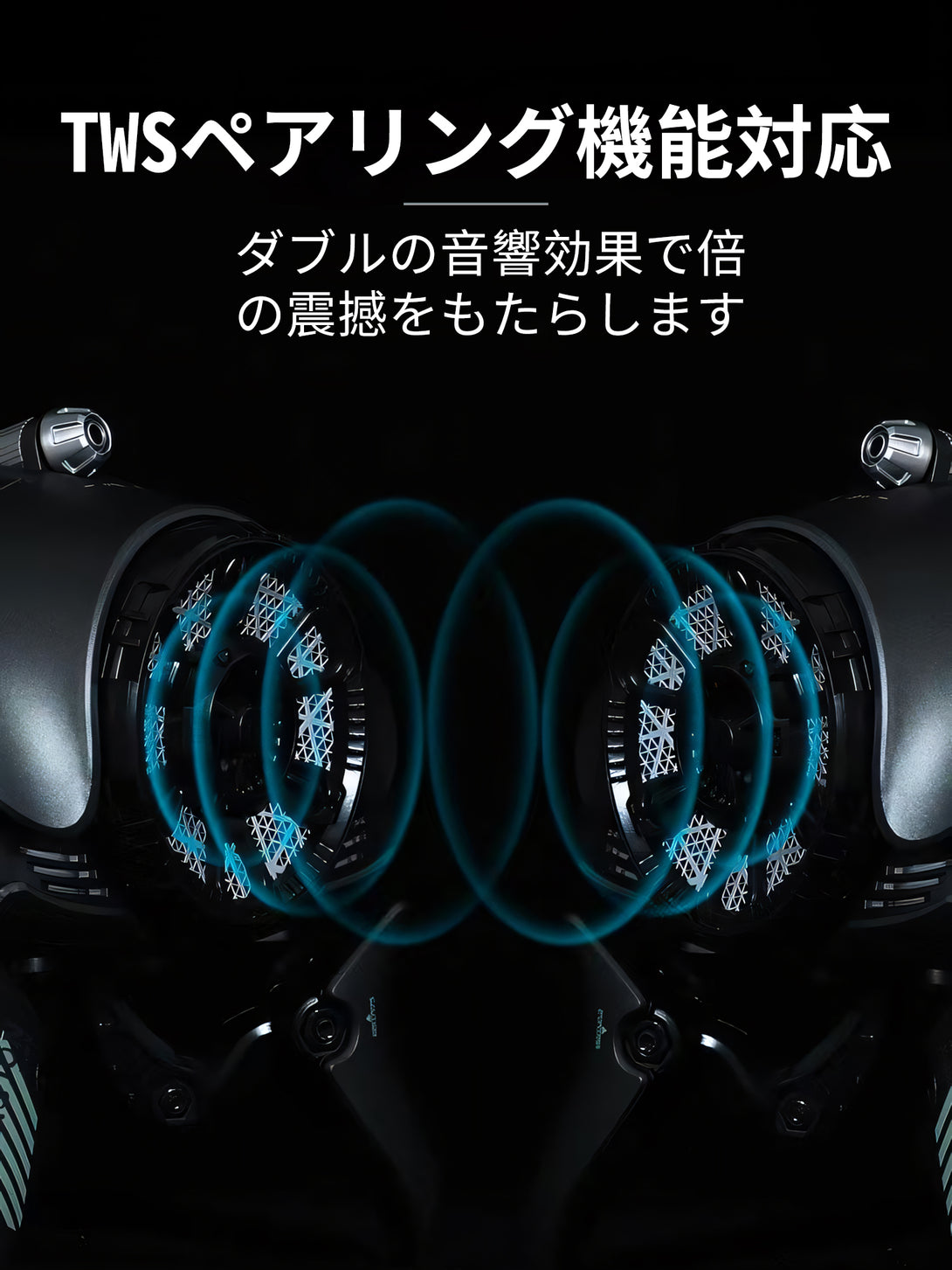 同じInva-Xを2台ペアリングすることで、左右のステレオチャンネルを形成し、環境音響を体験。ダブルの音響効果で倍の震撼をもたらします。