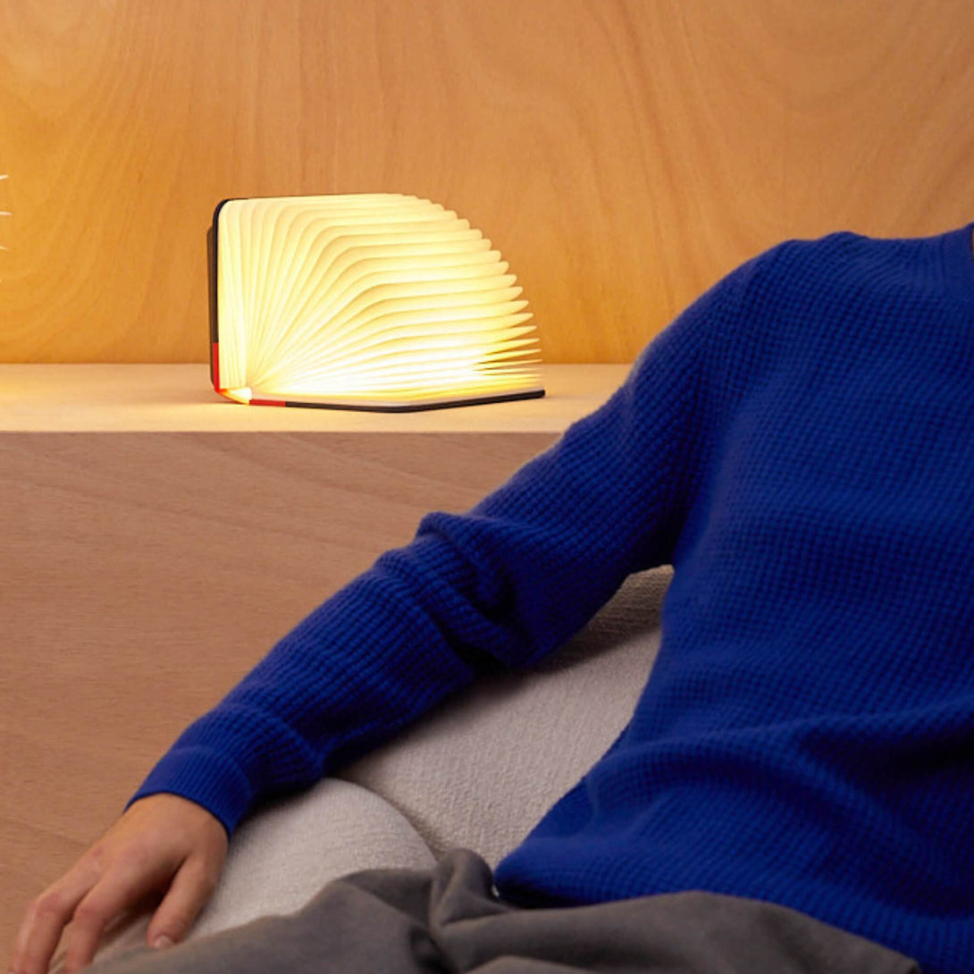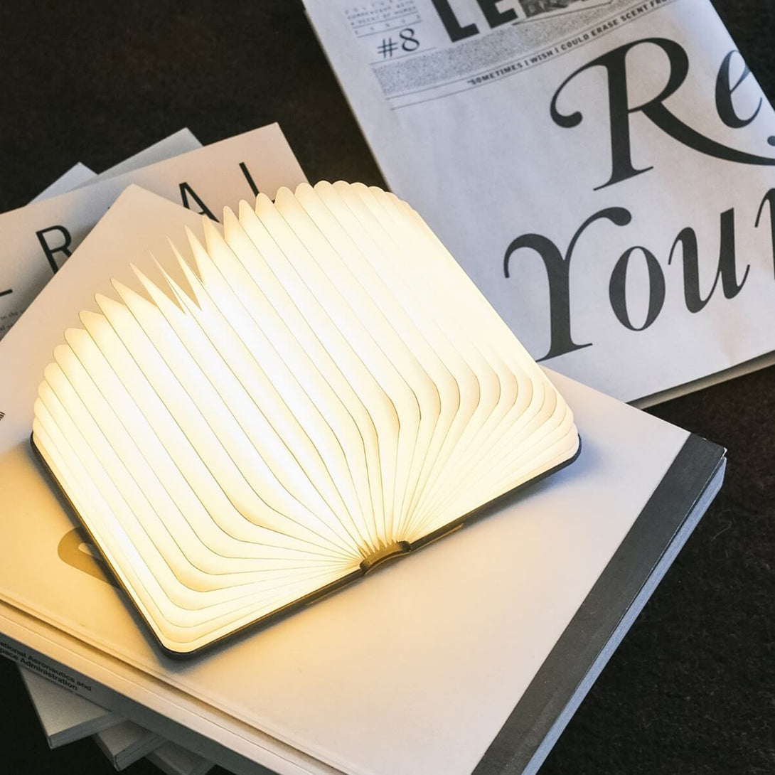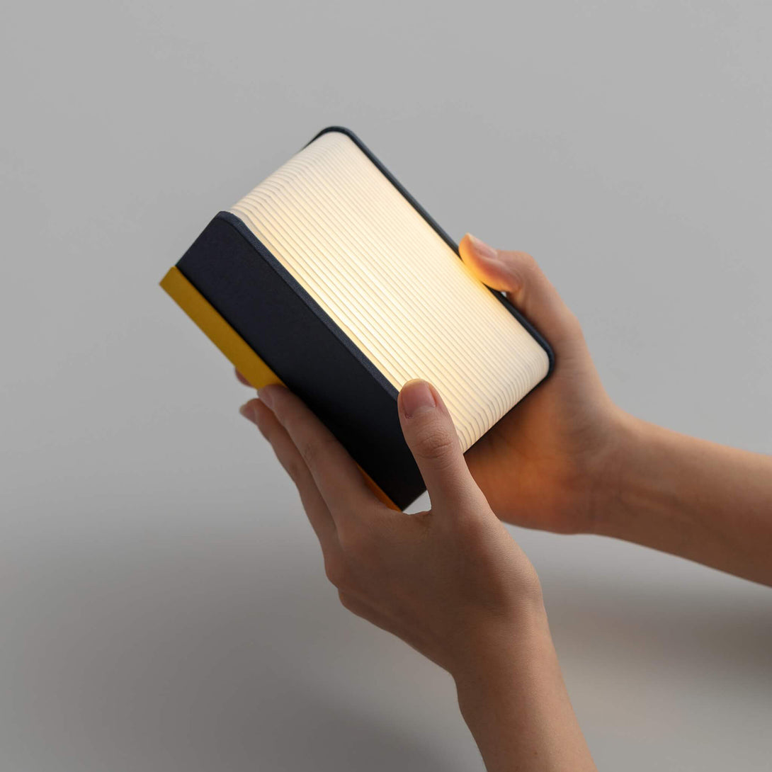 閉じると小さな本のように見え、開くと温かな光を放つランプに。