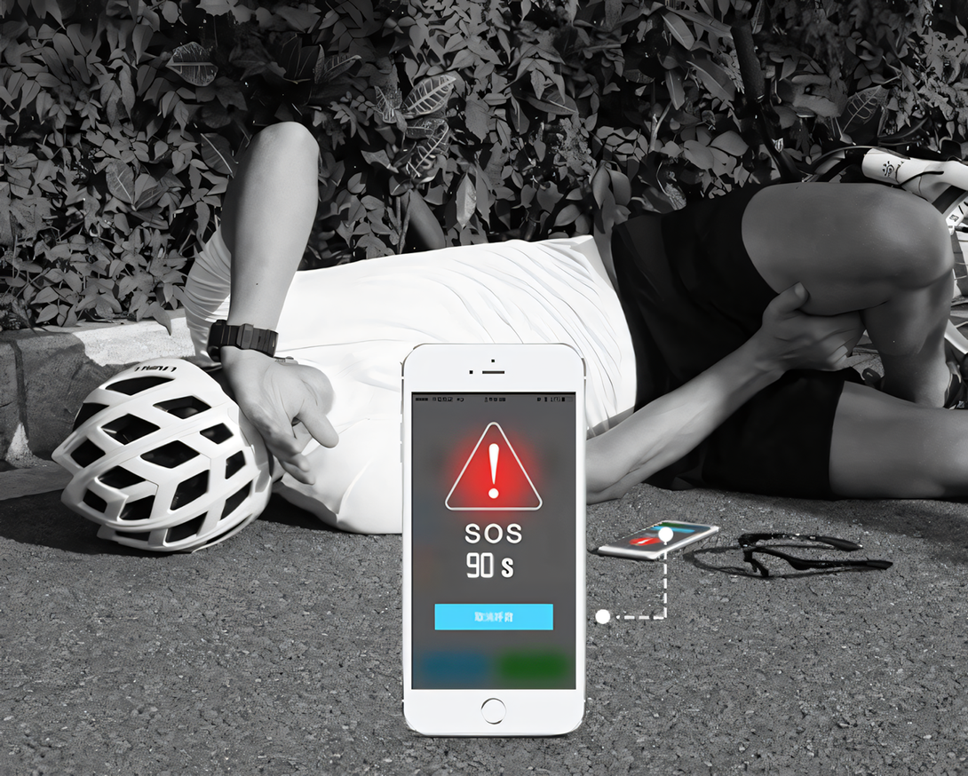 - アウトドアスポーツにおいて初めて特許取得の転倒検知とSOS警報機能を実現。事故が発生した際に転倒を検知し、90秒後にGPS位置情報を含むSMSを設定済み緊急連絡先に自動送信します。