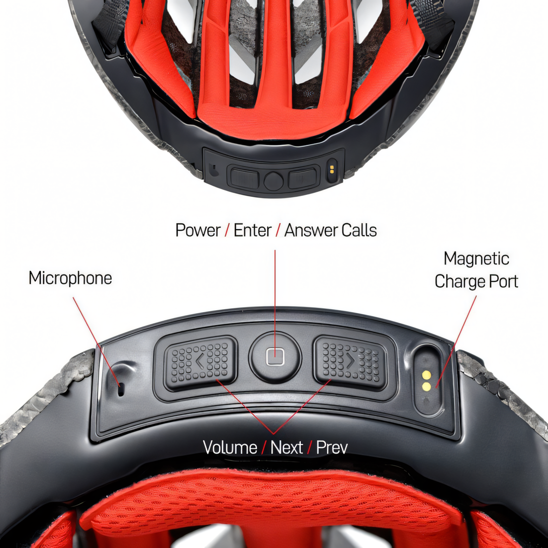 - ハンドルバーに取り付けられたリモコンで、ユーザーは手を離さずにヘルメットのウィンカー、ワンクリック回答、音声コマンド、PTTトランシーバーを簡単に操作でき、安全なライディングをサポートします。
