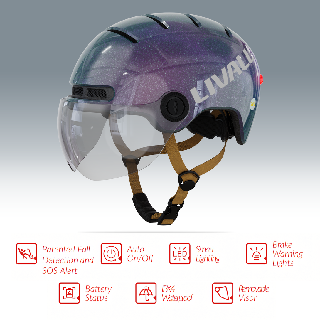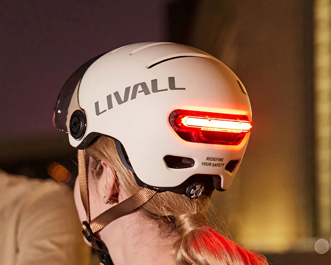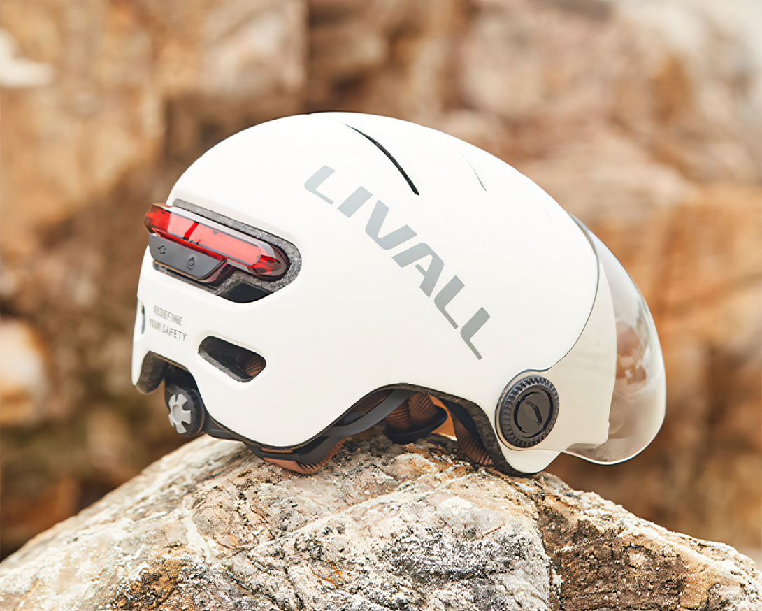 - 3つのLEDライトモードを備え、ブレーキ警告灯、方向指示灯(LIVALLリモコンによる)、自動センサーライティングなどのスマート機能を提供。周囲の車両に対して警告を行い、安全なライディングを実現。