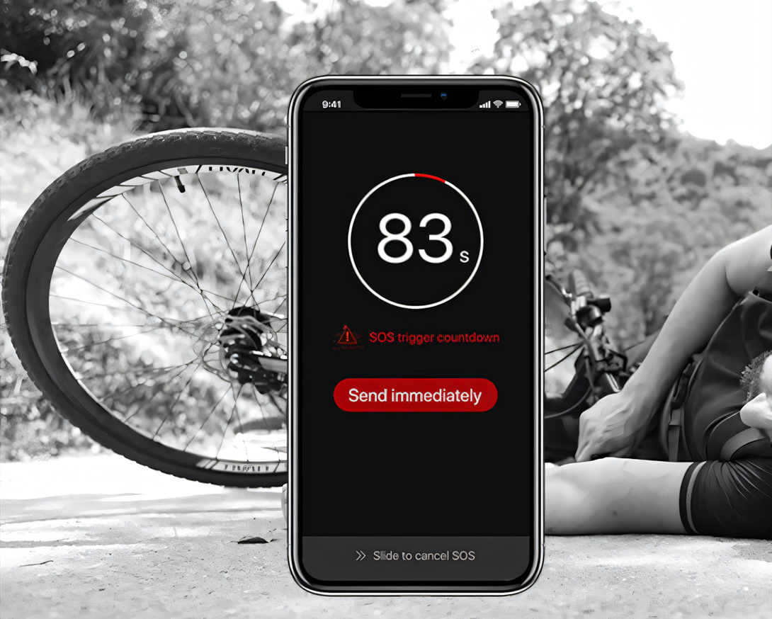 - アウトドアスポーツで初めて特許技術の転倒検知とSOS警報機能を実現。事故が発生した際に転倒を検知し、90秒後にGPS位置情報と共に設定された緊急連絡先にSMSアラートを送信。